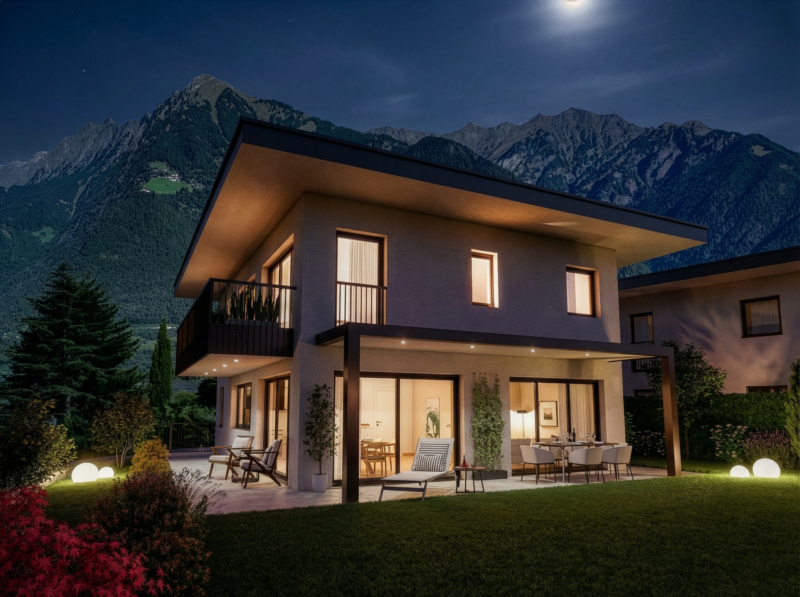 In una posizione panoramica da sogno e soleggiata sopra Merano, con una vista mozzafiato sulla Val d’Adige e sulle montagne circostanti, sta nascendo la moderna casa unifamiliare “Villa Serena”, un progetto realizzato dal costruttore Rohrer Immobilien.