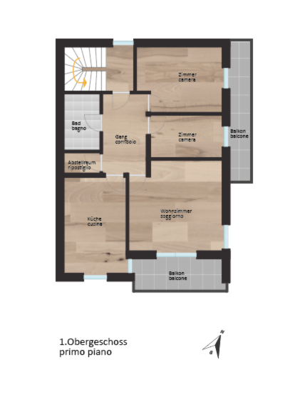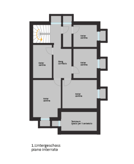 Sia l'appartamento al piano terra che quello al primo piano hanno la stessa disposizione e sono composti da un luminoso soggiorno, una cucina separata, due camere da letto, un bagno e una sala da pranzo. Al piano interrato si trovano due locali cantina per unità abitativa, un locale cisterna comune e un locale caldaia comune. L'immobile dispone anche di una soffitta, che offre ulteriore spazio di archiviazione.